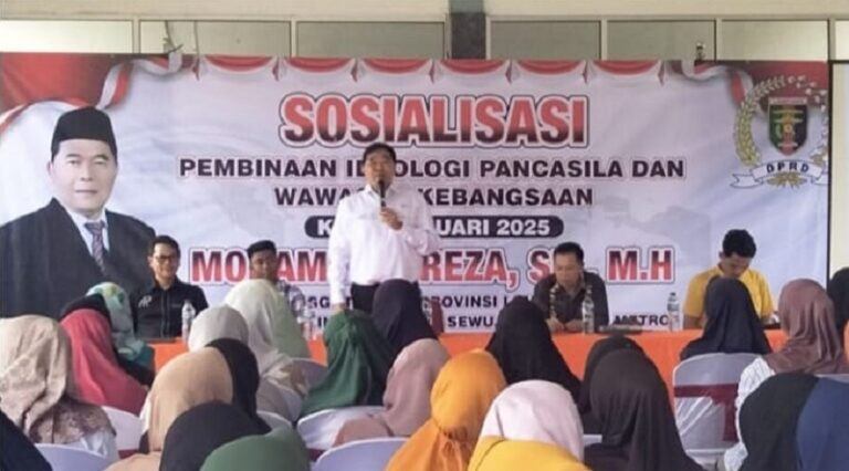 Lampung – Anggota DPRD Provinsi Lampung Muhammad Reza mengadakan kegiatan sosialisasi Pembinaan Ideologi Pancasila dan Wawasan Kebangsaan (IPWK) di Pekon Sri Rahayu Kecamatan Banyumas, Kabupaten Pringsewu, Kamis (30/1/2025).