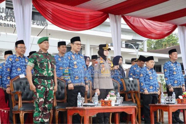 Pesisir Barat – Bupati-Wakil Bupati Pesisir Barat (Pesibar), Dedi Irawan – Irawan Topani, S.H., M.Kn., menghadiri upacara peringatan hari lahir Pancasila sekaligus Upacara Bulanan, di Halaman Komplek Perkantoran Pemkab Pesibar, Selasa (17/6/2025).