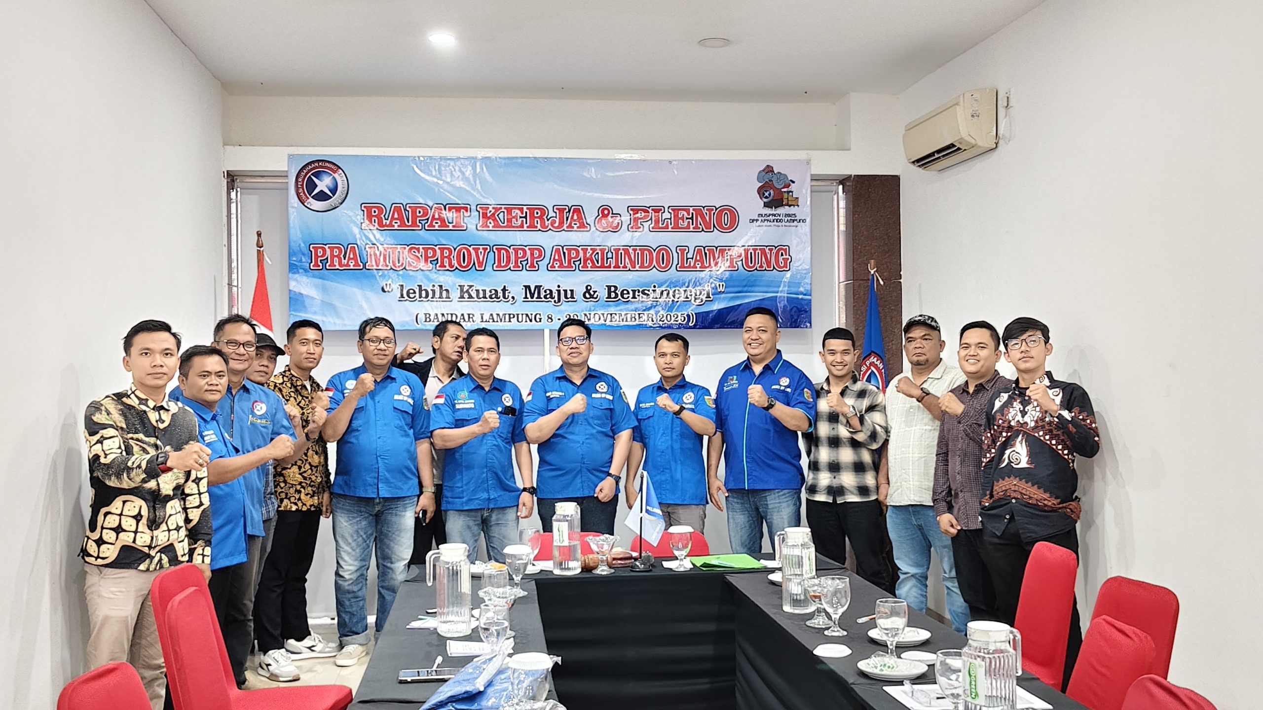 Bandar Lampung — Dewan Pimpinan Provinsi (DPP) Asosiasi Perusahaan Klining Servis Indonesia (Apklindo) Lampung menggelar Rapat Kerja dan Sidang Pleno Pra Musyawarah Provinsi (Musprov) I Tahun 2025 di Alodia Hotel, Bandar Lampung, Sabtu (8/11/2025).