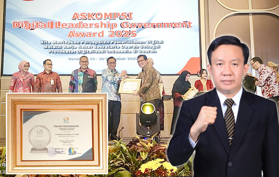 Surabaya – Sekretaris Daerah Provinsi Lampung, Dr. Marindo Kurniawan, S.T., M.M., meraih penghargaan SEKDA Terbaik Kategori Vision pada ajang ASKOMPSI Digital Leadership Government Award 2025. Secara nasional, Sekdaprov Lampung menempati peringkat ke-4 dari lima besar Sekda Provinsi terbaik se-Indonesia.