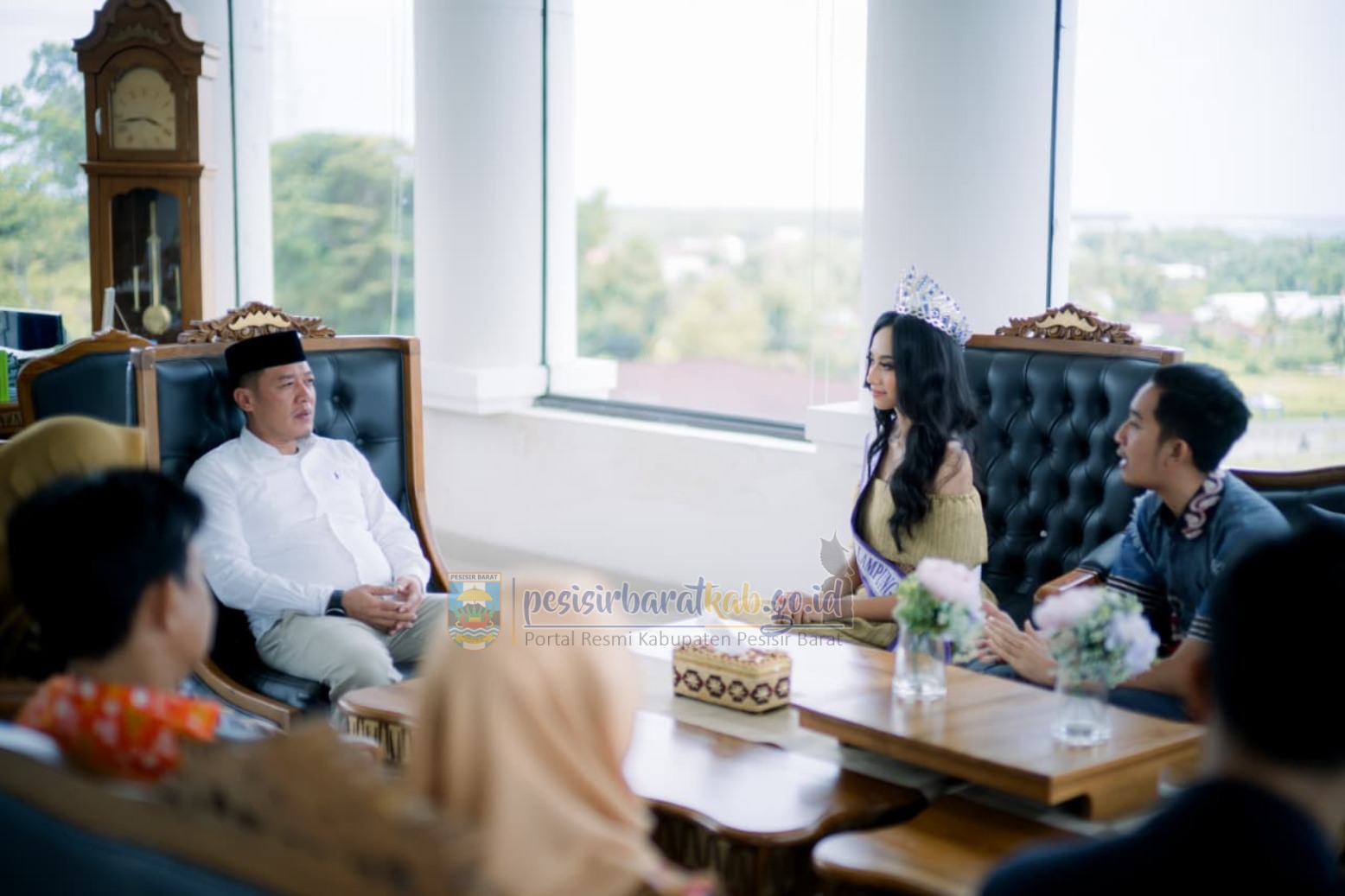 PESISIR BARAT – Bupati Pesisir Barat (Pesibar), Dedi Irawan, menerima audiensi Putri Indonesia Lampung di Ruang Kerja Bupati, Lantai 5 Gedung Marga Sai Batin, Kompleks Perkantoran Pemerintah Kabupaten Pesisir Barat, Sabtu (28/02/2026).